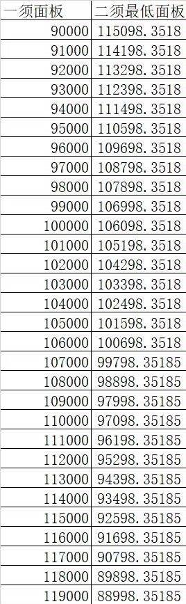 表格里的面板都是按照阿修罗最低的面板算的,阿修罗面板高了,双须面板也会低一些