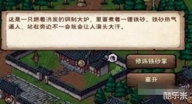 4、点击大炉就会弹出选项对话框,接着点击【修炼铁砂掌】。