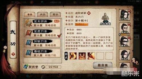 出处:天刀门【尹天殇】 ;描述:是一门浪费阅历和贡献的武学,比不过星云就算了,比不过少林棍920攻也忍了,连野刀都可以与之分庭抗礼。