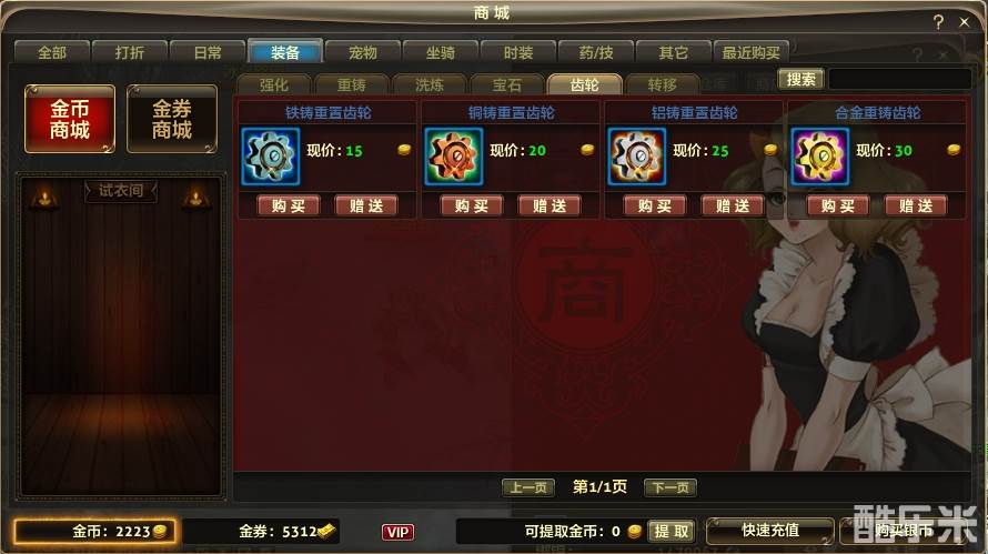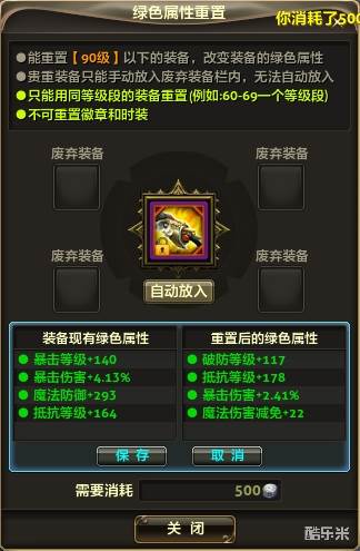 铜铸重置齿轮适用于70级以下(不含70级)装备的绿色属性重置;