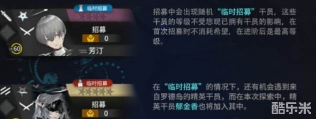 那么什么是主题特有干员呢?其实就类似于傀影肉鸽中的【暮落】,玩家在获取该干员之前,偶尔也会以“临时招募”干员形式出现,且应该像傀影肉鸽中的【暮落】一样,在水月肉鸽中有独特的天赋加成。