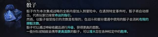 骰子作为本次集成战略的全新内容加入到冒险中。