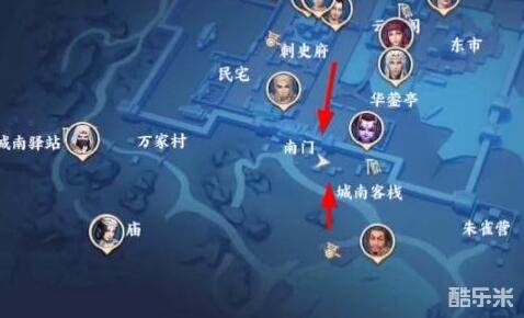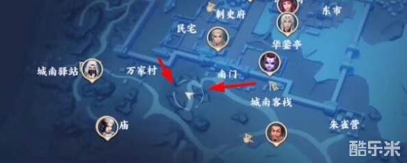 6、对话结束后我们来到下图位置,再次找到算命先生。