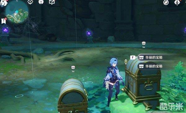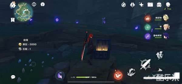 2、二号石板:玩家来到茂知祭场靠海边的山上。按照图中位置适用羽毛,点亮雕像后然后会出现雷灵,跟着它点亮雕像,得到宝箱打开就是石板。