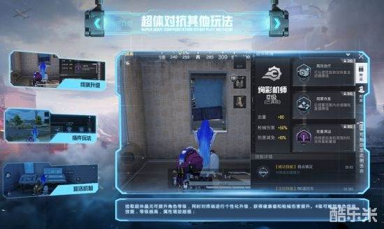 “超体对抗”模式内设“终端升级”、“插件玩法”和“复活机制”三大独特玩法。其中,特种兵拾取“超体晶元”可提升职业等级,同时对“终端”进行个性化升级,获得健康值和枪械伤害提升;值得注意的是,4级可解锁职业终极技能,等级越高,属性增益越强。