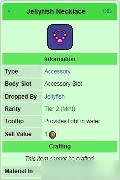 【绿水母】生成于地下矿洞中 (肉山后)掉率为1%