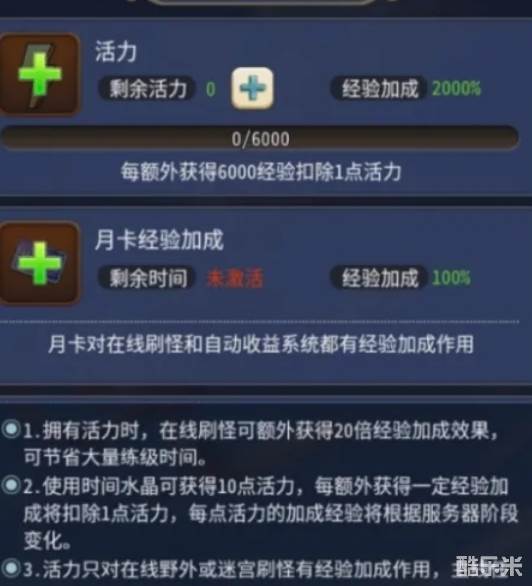 55月卡V1贵族:每日在线挂机经验是有限额的,在左上角打卡页面的地步可以查看额度,建议时间水晶每天买满,通过挂机把限额挂满,离线经验水晶也要吃满,28级之后记得要加入家族,在家族页面进入酒馆每天都是可以吃经验了,发现很多新人都不知道,主线必须做满基本就能跟上第一梯队了,至于如何成为等级金字塔顶的男人,可以找一下我们巨蟹5克总在贴吧发的新区冲级攻略。