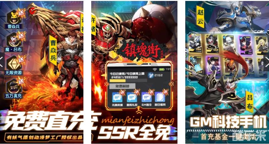 2.充值比例1:10000,首充免费拿!连续登录即可领取价值千元的SP无双战神魔·吕布!礼包码领取海量材料!这条街你说了算!