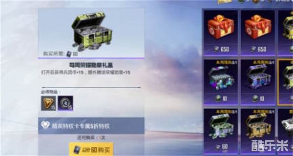 4:接着就是礼盒五折,包含每周荣耀勋章礼盒,物资礼盒,服饰币礼盒,三个礼盒全部半价;