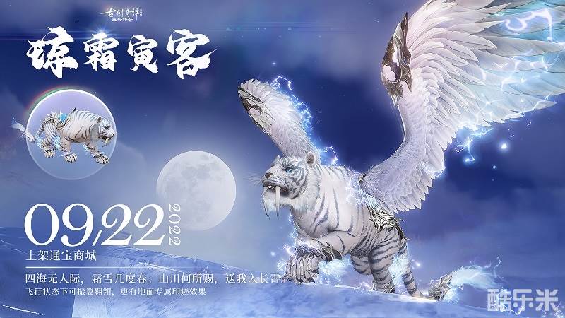 相传全新坐骑【琼霜寅客】是某座山巅的千年寒雪得灵力造化而生的仙家异兽,今日更新维护后即会上架通宝商城!