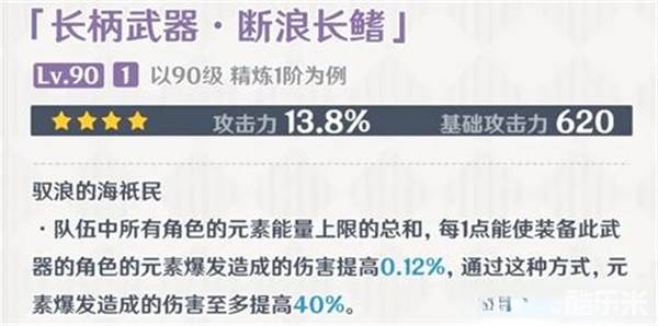 该武器可以根据全队元素能量上限来提高角色的大招伤害,刚好赛诺元素爆发能量要求高,同时输出也主要是元素爆发,所以非常适合使用该武器。