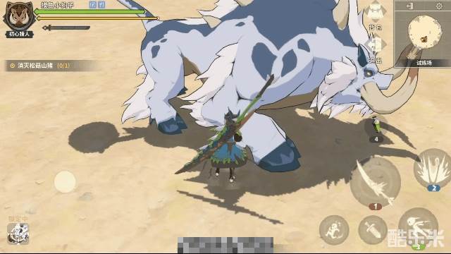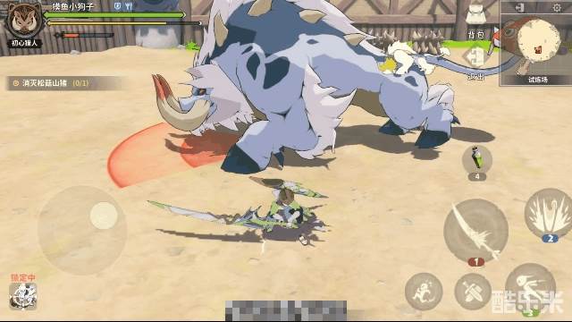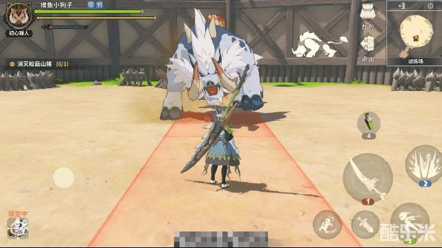 蘑菇猪的攻击方式跟奇木龙有些相似之处,而且体积比较小,打起来不大会遮挡视线,所以观察怪物的动作会比较方便。而且,有一说一,这个难度的怪物吧,撞几下也掉不了多少血。容错率还是很高的。