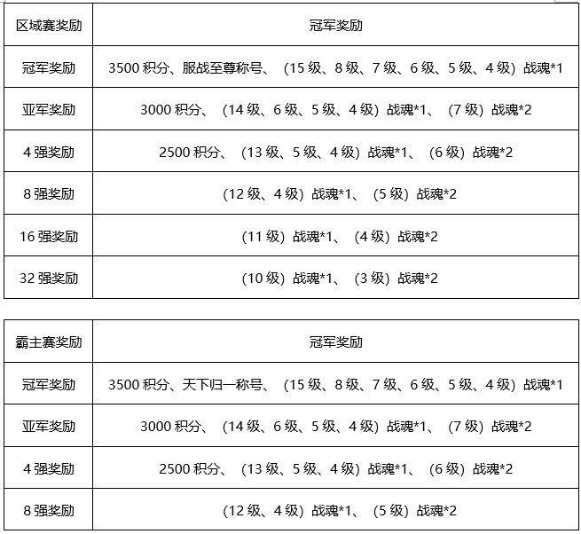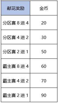 4.区域赛跨服战32强金币奖励:(活动结束后三个工作日内发放)