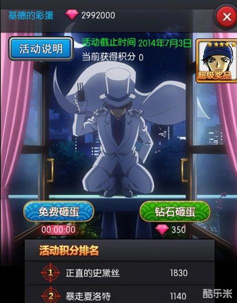 基德的彩蛋分为“免费砸蛋”和“钻石砸蛋”