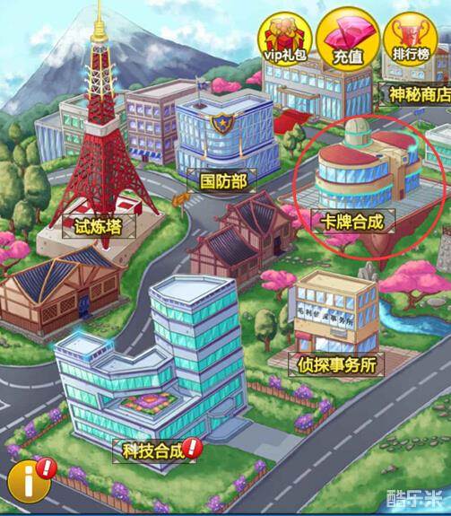 卡牌合成的入口就在主界面侦探事务所的上方~