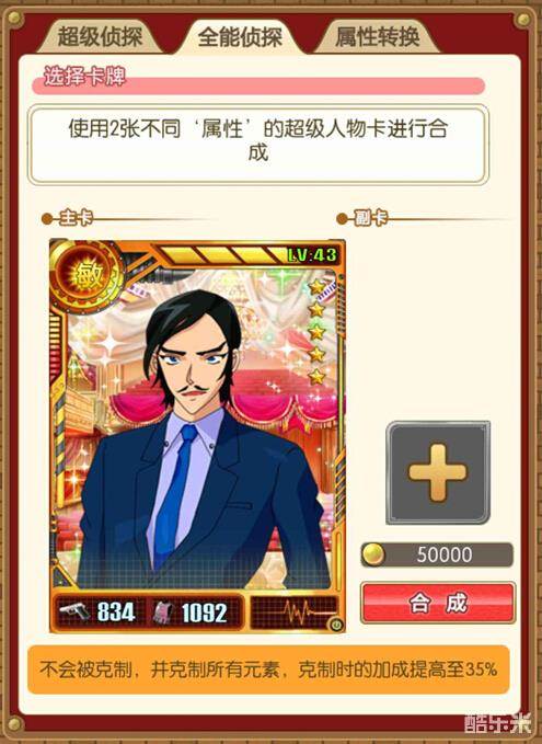 二:合成全能侦探,使用2张不同属性的相同超级侦探来合成