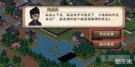 2、之后再点击【答应此事】,然后前往洛阳场景找到蔡半仙。
