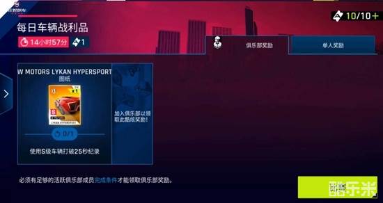 其次还会有俱乐部奖励,但是需要有足够的活跃俱乐部成员完成条件才能领取。这里的任务目标会难一些,例如你需要拥有一辆S级车辆,打破25秒纪录等。