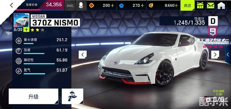 游戏内的车辆一共有4种属性,分别为最大速度,加速,操控性和氮气。我们需要通过消耗金币来强化各项属性。同一种属性多次强化后,还可以装上一些进口零件,进一步提升该属性。除此之外我们还需要收集更多图纸来给车辆升星,并解锁属性的更多强化阶段。