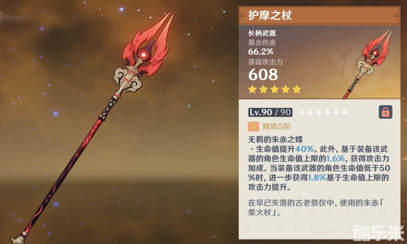 赛诺专武,最适合赛诺的武器,90级增加44.1%暴击率,再加上赛诺突破增加暴击伤害 ,让赛诺面板变得更容易成型。赛诺既需要叠精通又需要攻击力,而赤沙的天赋可以在叠精通的情况下增加攻击力,适合赛诺的同时也完美契合饰金四件套。