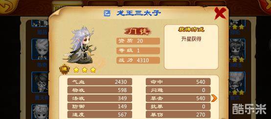 1,我们知道门徒分为甲乙丙三等(也就是紫、蓝、绿三种),但不是说在门徒上阵的时候,全部上阵甲等门徒就厉害。首先,有的甲等门徒战斗力不一定比乙等门徒厉害,也要看门徒的星级,因为星级高的**有些特别属性以及较高的成长性;其次,我们还要看门徒之间的属性搭配。比如说,龙王三太子虽然是乙等英雄,但由于是3星级,它的一些属性与发展潜力比一些甲等门徒还要厉害。