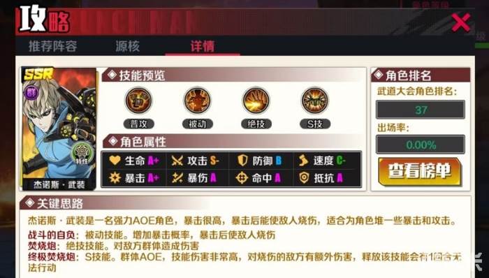 《一拳超人正义执行》杰诺斯外号“经费战士”,是所有英雄中技能最炫酷的,下面就来聊聊这位魔鬼改造人,说说围绕他应该如何构建阵容。