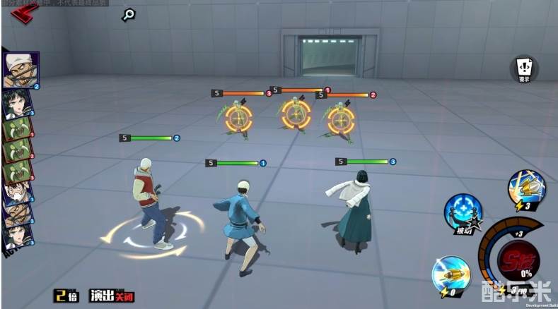 本关我方对战螳螂男*3,虽然螳螂男为群攻型boss,但伤害并不足以一回合就将我方队伍击败。整体来看,此章节只要保证火男面及时使用绝技为我方补充能量即可。