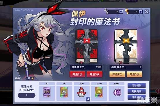打开普通魔法书有概率获得“高级魔法书”,可以使用“高级魔法钥匙”打开。抽取分为1次/5次抽取每次抽取数会累计,经过下方5个节点可以获得不同礼物。抽取过程中有一定概率获得“佩伊的兑换券”,可以用于兑换商品。