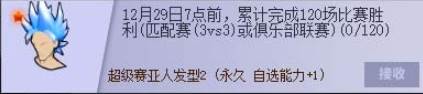 活动期间内累计120场比赛胜利(3v3匹配赛、俱乐部联赛)可以获得道具: