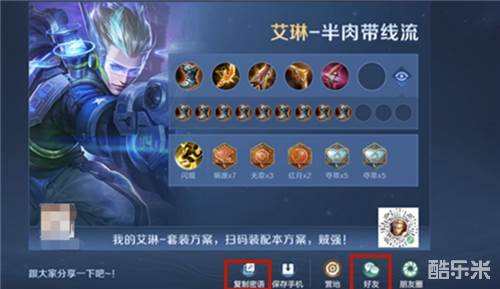 4.至于密语的使用方式,如果是图片版就是让好友扫码,如果是文字版就让好友复制然后登录游戏,游戏会自动识别并且提示使用这套出装方案。