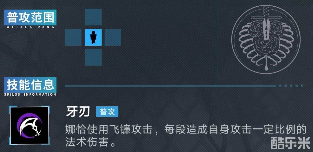 这里我们来看娜恰的4个技能,这里第一个普攻还是基础的小短手十字格范围,但待会娜恰的被动技能却会为她提供不小的普攻增幅,另外娜恰的普攻伤害是法术伤害!!!所以这也是目前游戏中在刺客诡秘职业上的法术之光!(受枷者有没有在瑟瑟发抖呢?)