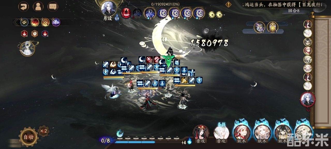二阶段(24回合),开局食灵给须佐喂饭,因普攻boss挂易伤,帝释天挂金莲,食灵然后一直给面喂饭,在boss进入狂暴阶段后用防御御守,boss二连动一线目掉了之后,绿标须佐,然后挂机即可通关。