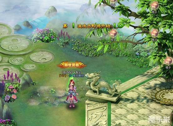 蟠桃树下是进入的初始点也是复活点,怪物会从下方3个圆台沿路向蟠桃树侵袭!