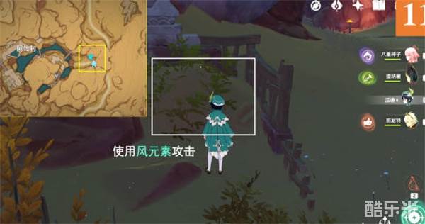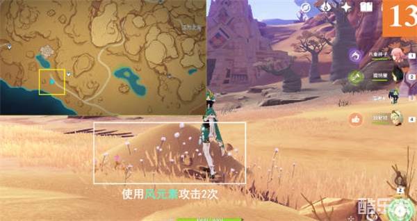 3:十三号点位,也在下风蚀地这个位置,然后我们使用风元素技能攻击两次,如图所示的沙堆样式,这样我们就找齐了;