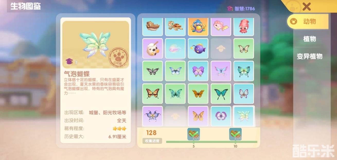 气泡蝴蝶会全天出现在城堡、阳光牧场。