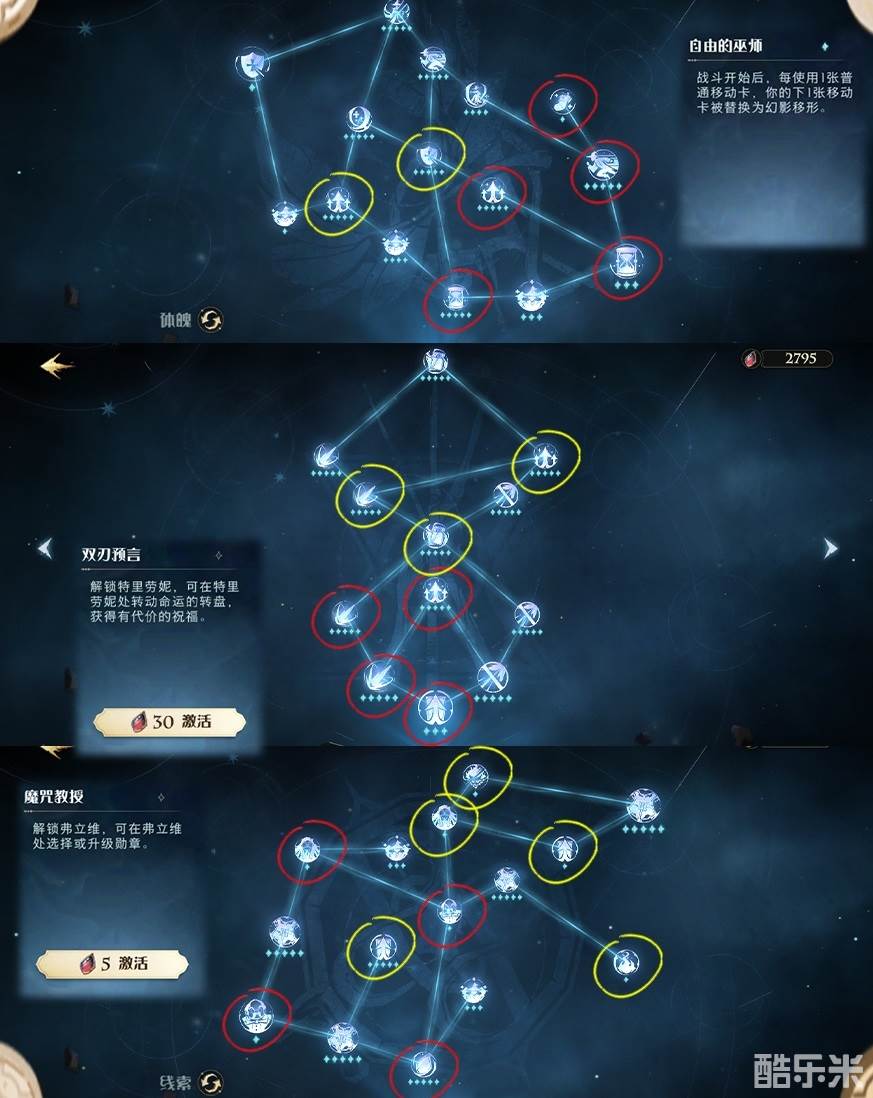 4、先点红圈天赋(过暗影),再点黄圈天赋(过梦魇) ,最后加点剩余天赋,详情见下图: