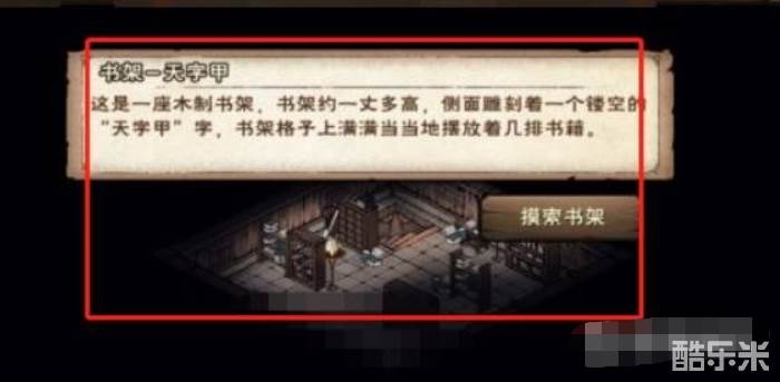 d.书架-天字丁,右中书架(3,2),拳经、千斤坠,残页获得概率最高。