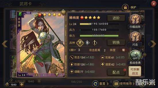 2.在“一骑当千”、“雄兵破敌”、“折戟强攻”等高强度战法富余的情况下,由甘宁佩戴作为物理系阵营的输出核心,推荐同时由队友佩戴战法“方圆”、“凤仪亭”进一步增强甘宁的输出。