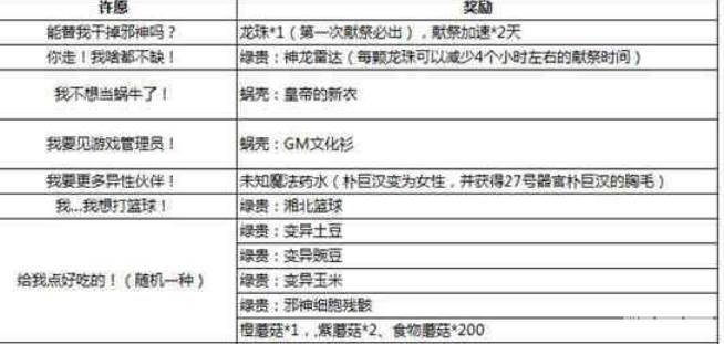 注:许愿“能替我干掉邪神吗?”第一次必出龙珠,优先推荐大家选择这个!