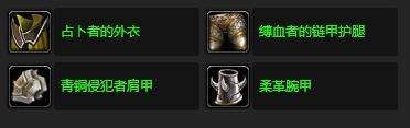 占卜者的外衣、柔革腕甲、缚学者的链甲护腿、青铜侵犯者肩甲。