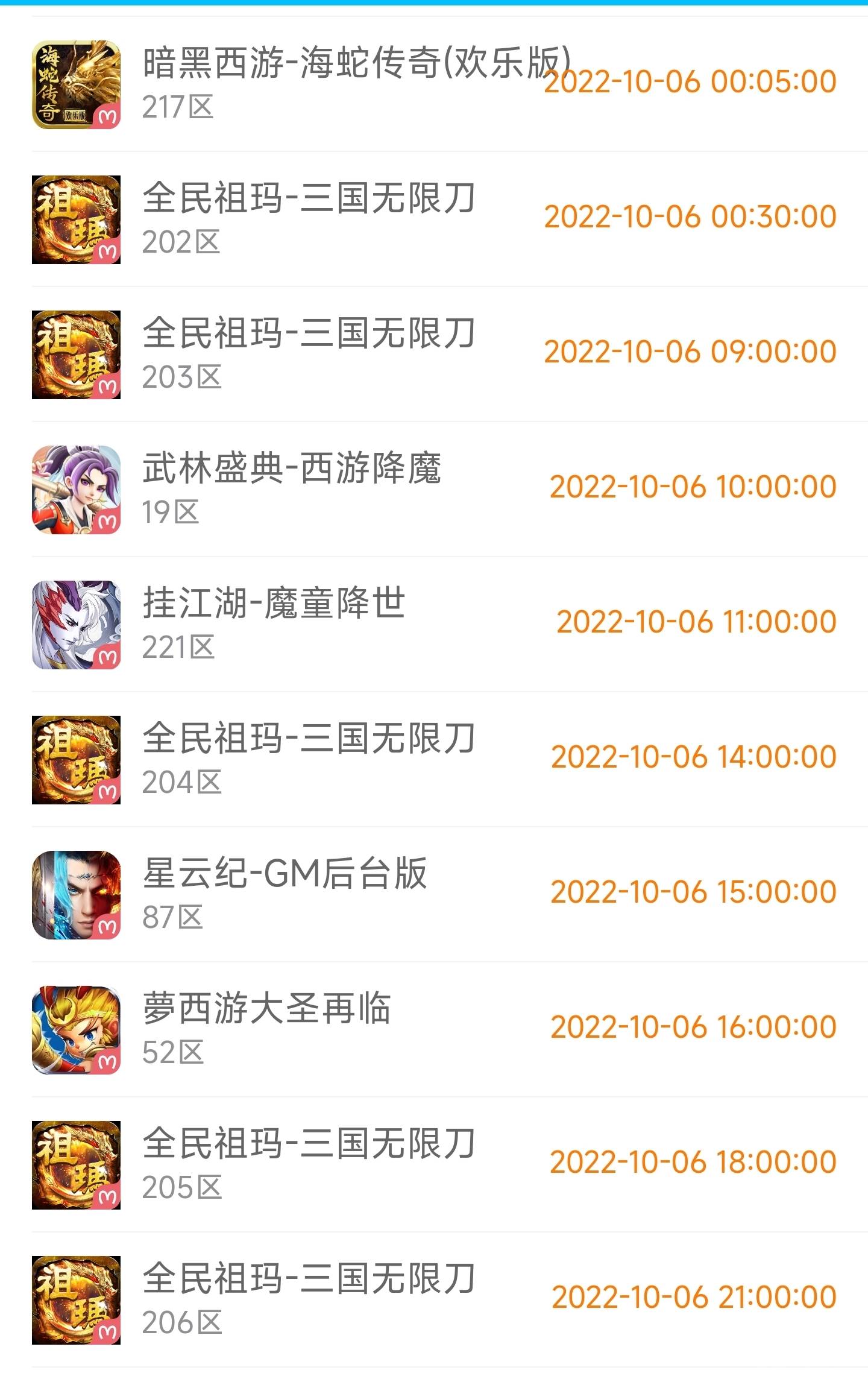 | 挂江湖-魔童降世 | 221区( 苹果- 安卓) | 2022-10-06 11:00:00 |