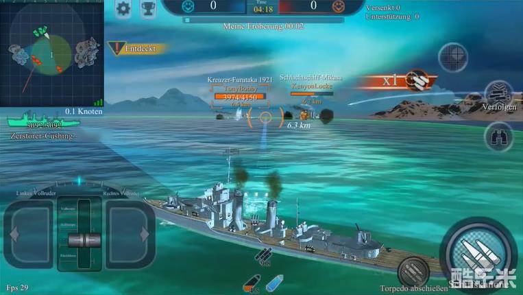 可以看出与国内完全不同的CG动画,战舰名称旁的国旗则代表了玩家的国籍,与欧洲不同国家的玩家同屏对战。《巅峰战舰》能够登录欧洲,这得益于产品的全球化布局。在9月上旬,游戏正式登陆欧洲、南美等地区,并荣获App Store全球54个国家同步推荐,创造了TPS海战品类游戏的世界纪录。