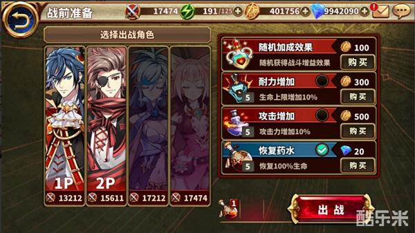 选择对应想训练的角色,可以选择购买右侧的加成效果,点击出战按钮,就可以开始进行训练模式了。训练模式是一个单人模式,玩家最多可以控制一个电脑陪你一同进行,在打斗过程中,BOSS是不会对玩家造成伤害,所以想练习操作熟练度或发觉更多好玩的连招方法就多多进行训练模式吧~