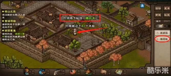 烟雨江湖主角50级正好处在进阶武学的突破期,该拿的进阶武学基本上都拿到了,上乘武学要到60级才能拿,不过50级解锁了3个重要秘技,第一个是腾跃术,去幽州武馆的梅花桩选择“极限挑战”,每次跳个40~60个,跌落的时候就有概率习得腾跃术,很有用的速度类秘技,50级就可以去拿。