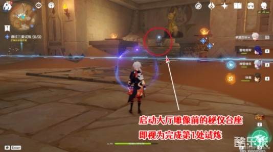 18.接下来我们从刚才打开的门进入中间这个大厅,启动雕像旁边的秘仪台座,第一重试炼就算通过完成了。