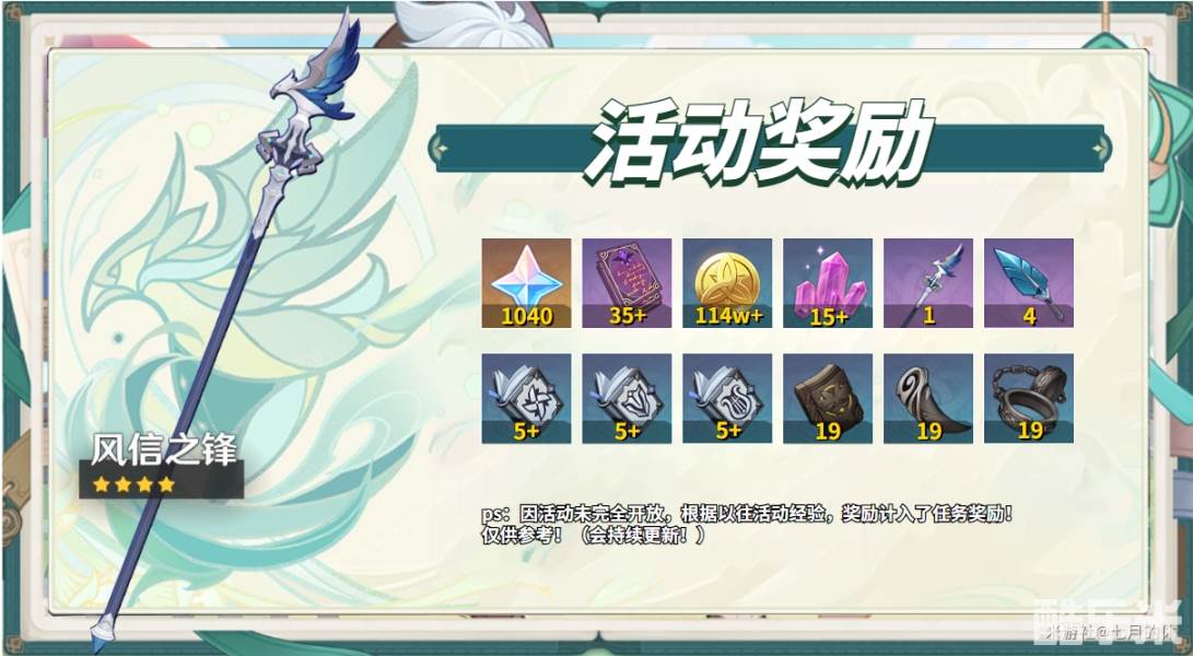 6、完成各个玩法,可获得「节庆热度」,节庆热度达到指定值可获得活动专属武器「长柄武器·风信之锋」(绝版!)及其精炼材料。