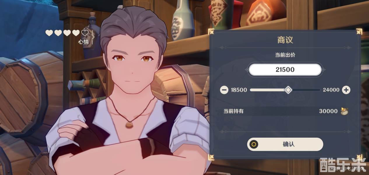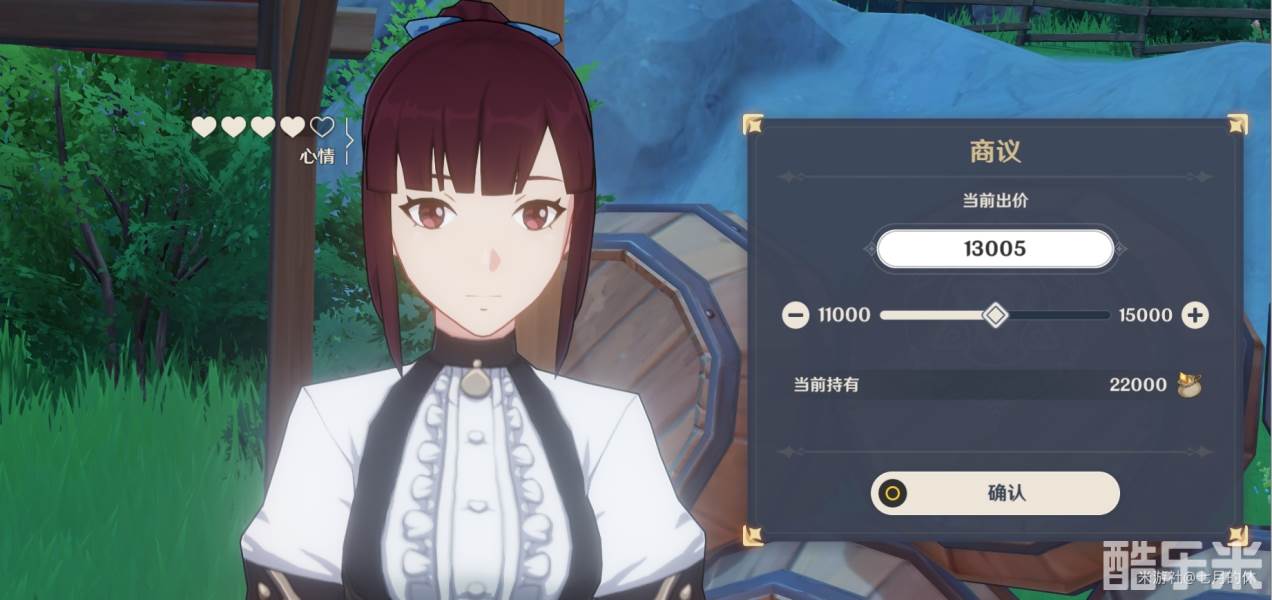 注意:可以砍价,但是npc的心情值(爱心)没了,就没有折扣了!这里楼主保守出价到1.3w摩拉!