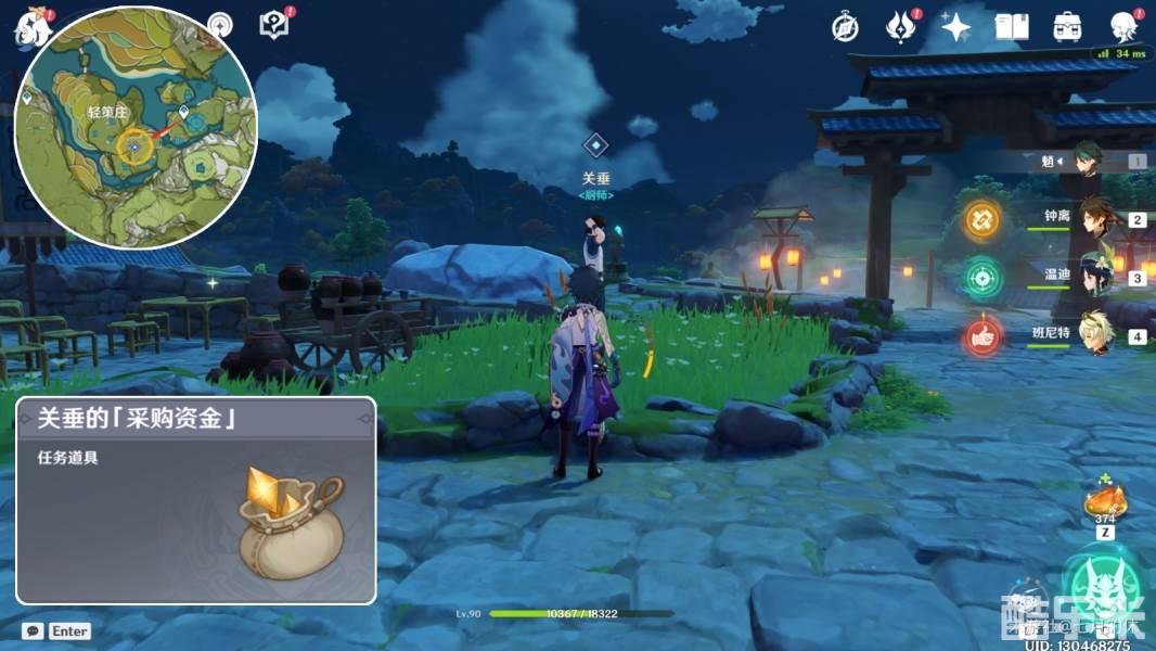 获得订货单据,前往轻策庄,答复关垂(到这楼主有21490摩拉了,只差1.05w摩拉了)