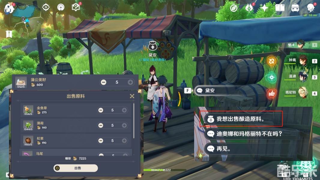 返回清泉镇,向黛安提出采购订单(楼主还是保守的选择了1.3w摩拉,对话显示店主小亏了,所以还想压价的注点意哈~)
