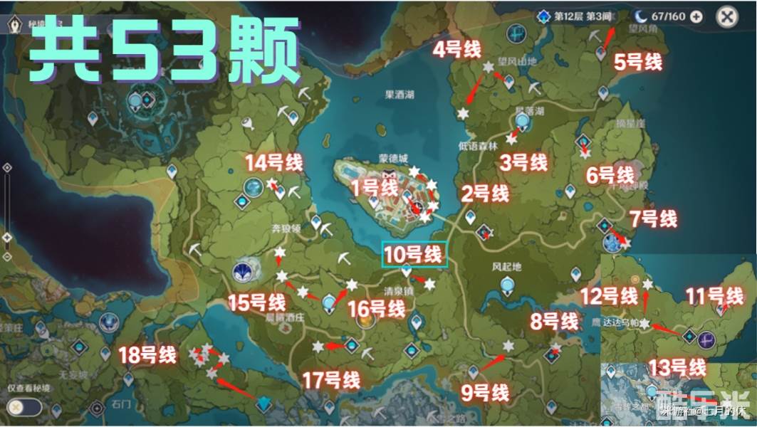 每样最多只能卖5颗,最多获得7225摩拉!其它的都很常见,蒲公英和马尾给大家标记了路线。